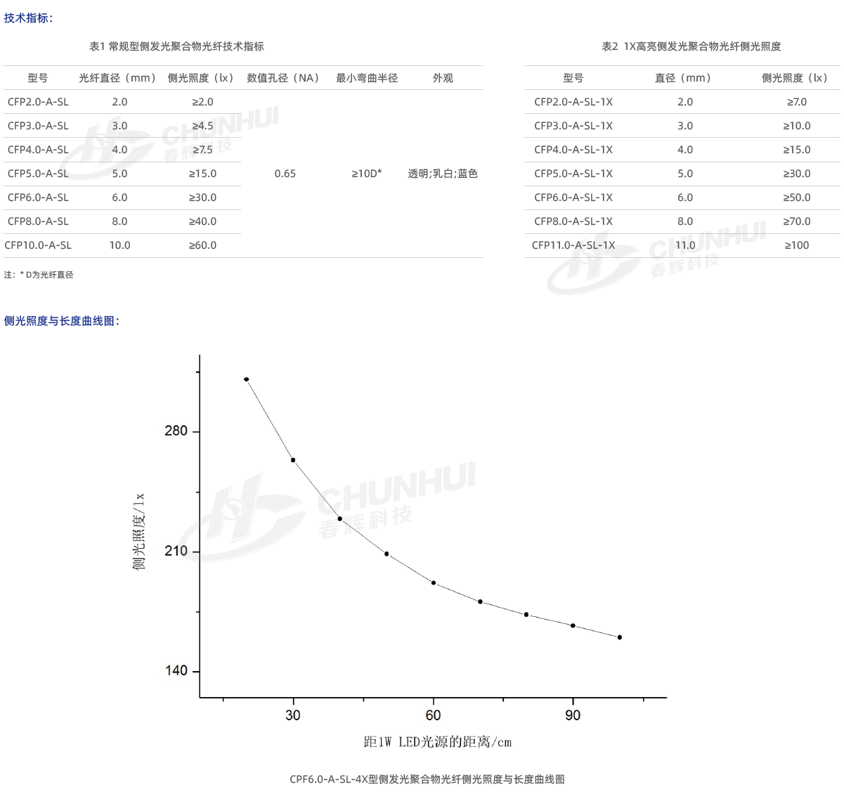 在波長(cháng)650nm處, 常規型側發(fā)光聚合物光纖每米透光率大于90%以上,導光距離可達40m;