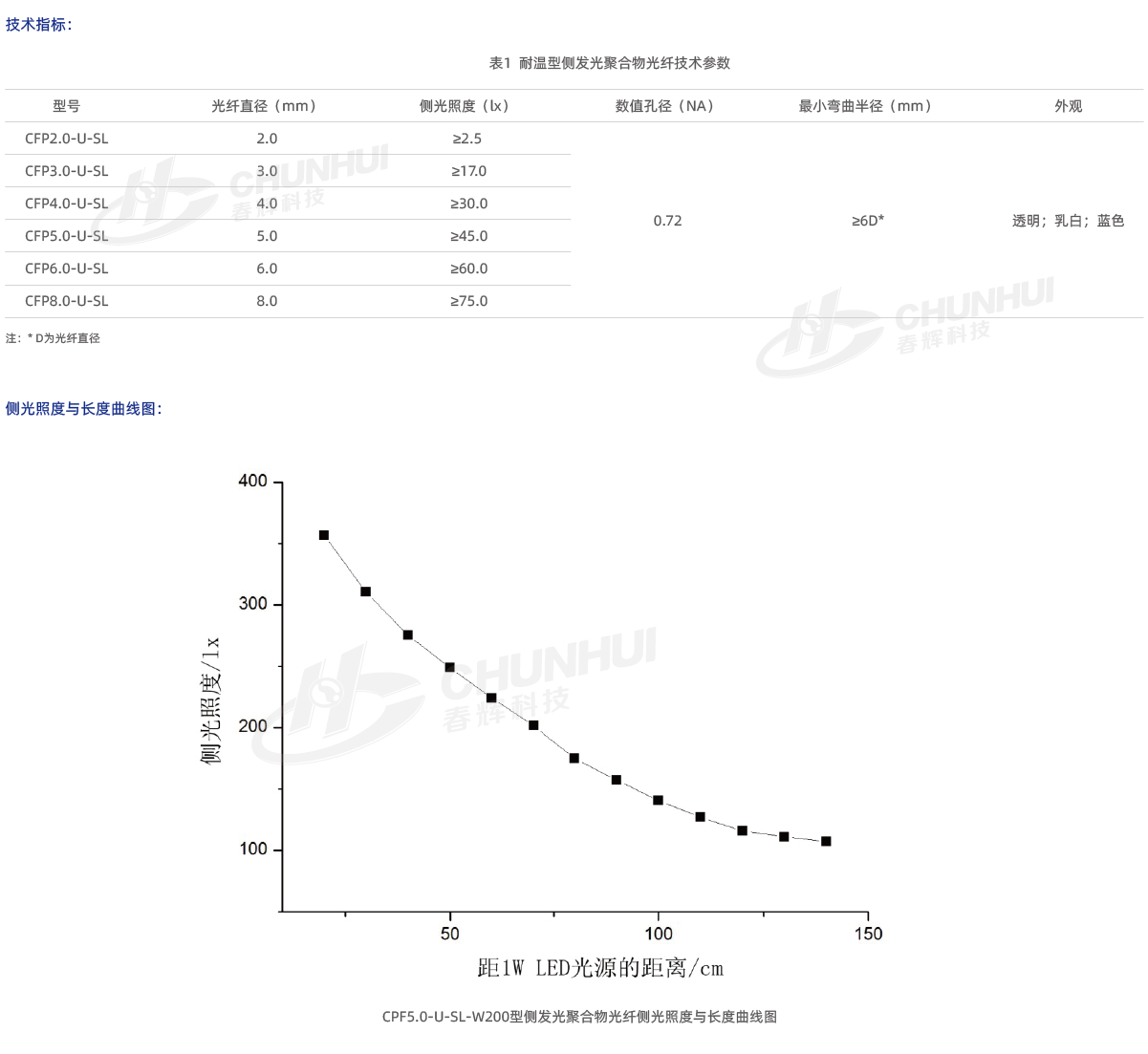 耐溫型側發(fā)光聚合物光纖可在-40~105℃溫度下使用;