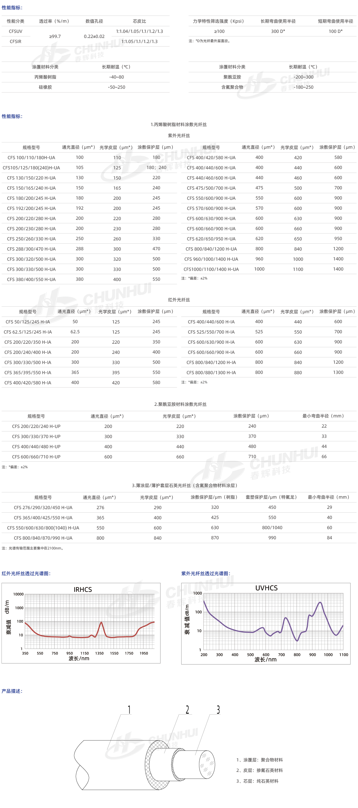 采用石英材料作為通光芯層和光學(xué)皮層,聚合物材料作為涂敷保護層;